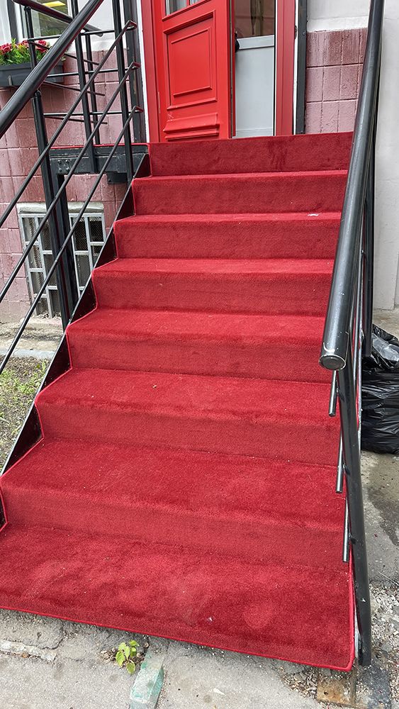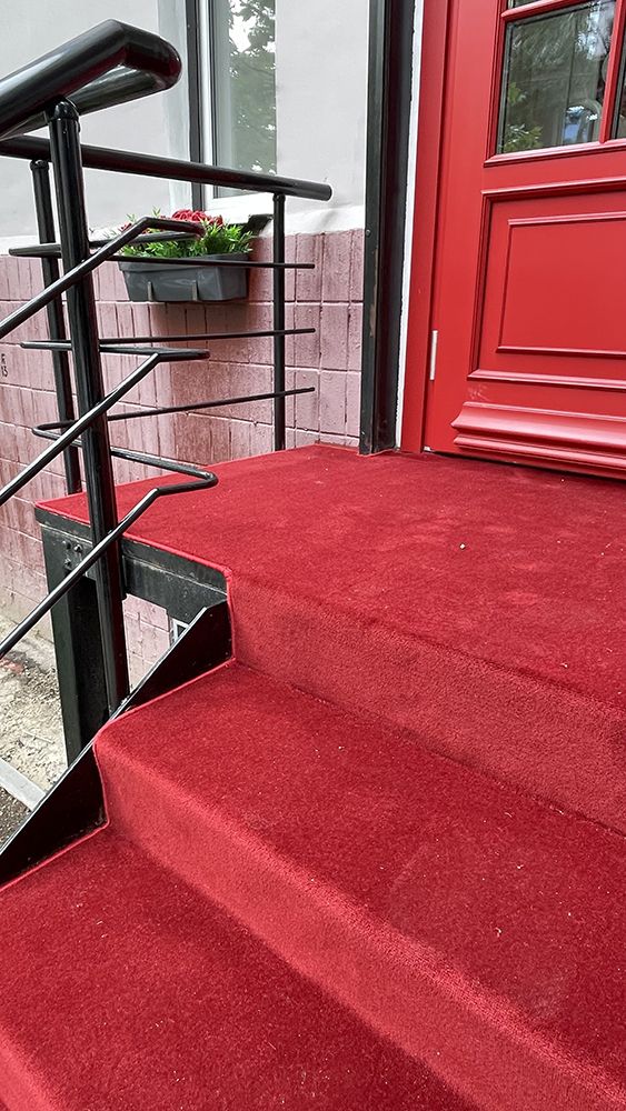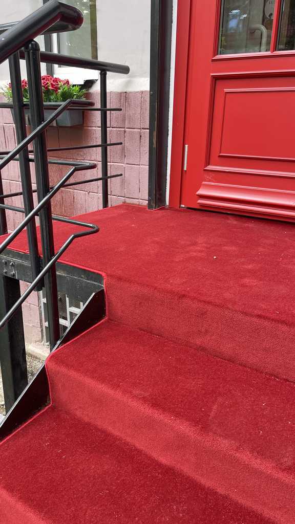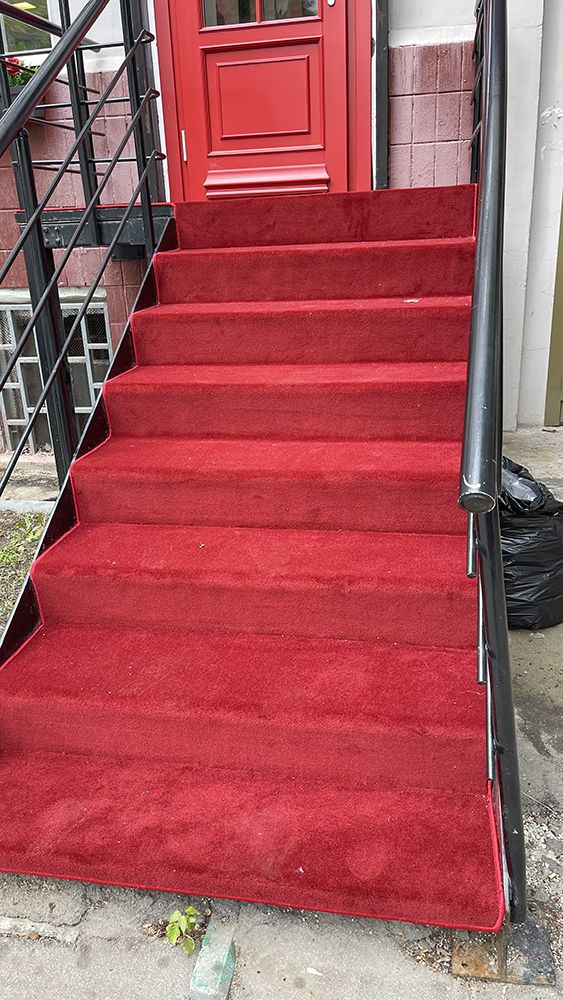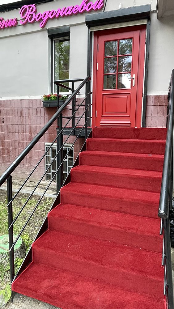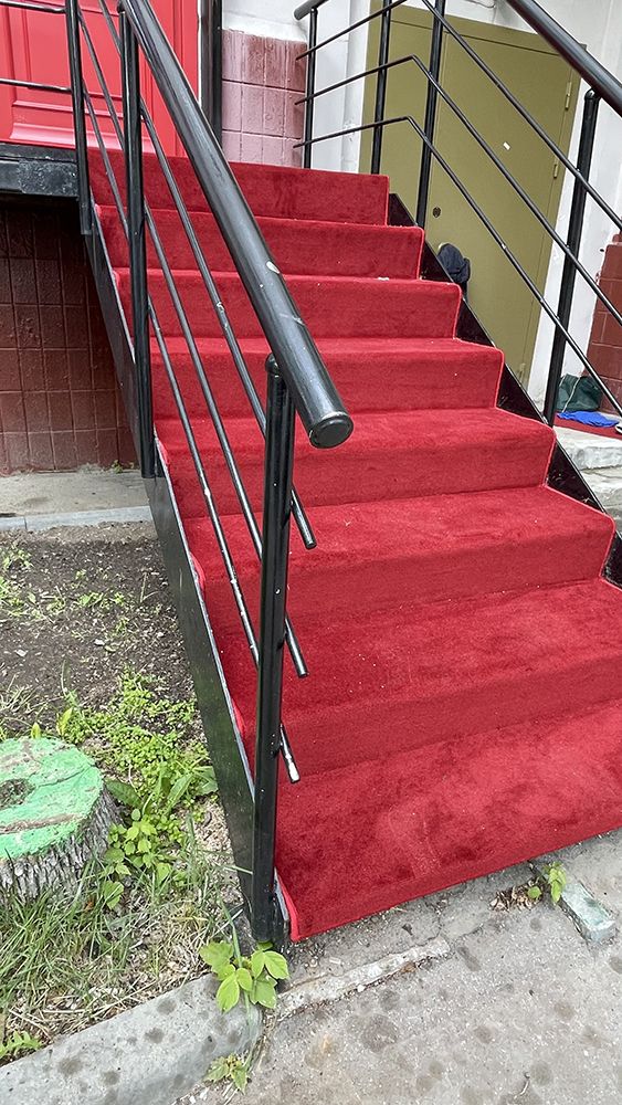 Лестница, находящаяся на улице, часто становится первым элементом, который встречает гостей и прохожих. Наша задача заключалась в том, чтобы превратить её в настоящий привлекательный элемент. Мы выбрали красный ковролин, который не только стал ярким акцентом, но и добавил ощущение тепла и уюта. Красный цвет — это символ энергии, страсти и уверенности, так что укладка этого материала была продиктована не только эстетическими, но и эмоциональными соображениями.