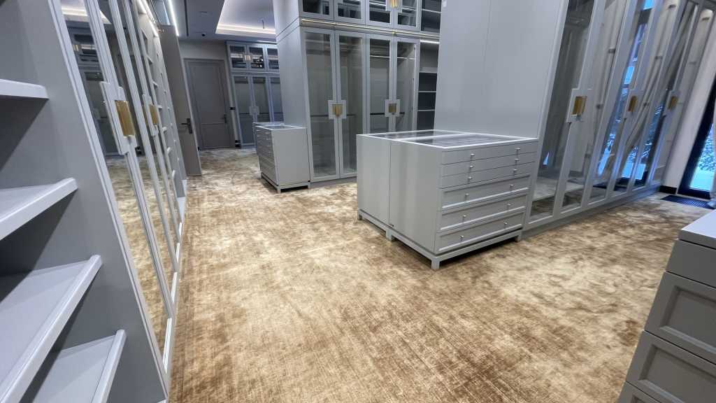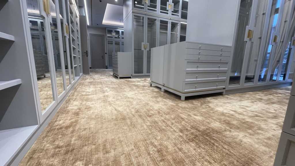 Мы успешно завершили работы по монтажу и укладке коврового покрытия ручного тафтинга в большой гардеробной комнате частного дома Одинцовского района. Наша команда специалистов проявила высокое мастерство и профессионализм в реализации данного проекта.