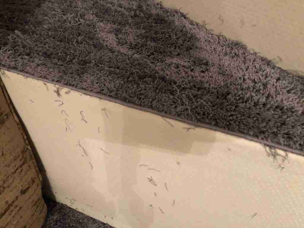 - Ворс - 100% Полиэстер, что обеспечивает долговечность пользования и легкость ухода. В особенности данная модель была выбрана именно по причине своих отменных эксплуатационных свойств, поскольку также планировался монтаж на небольшую лестницу-подиум в помещении (никаких заломов или сминания ворса!).