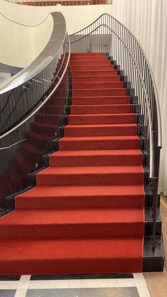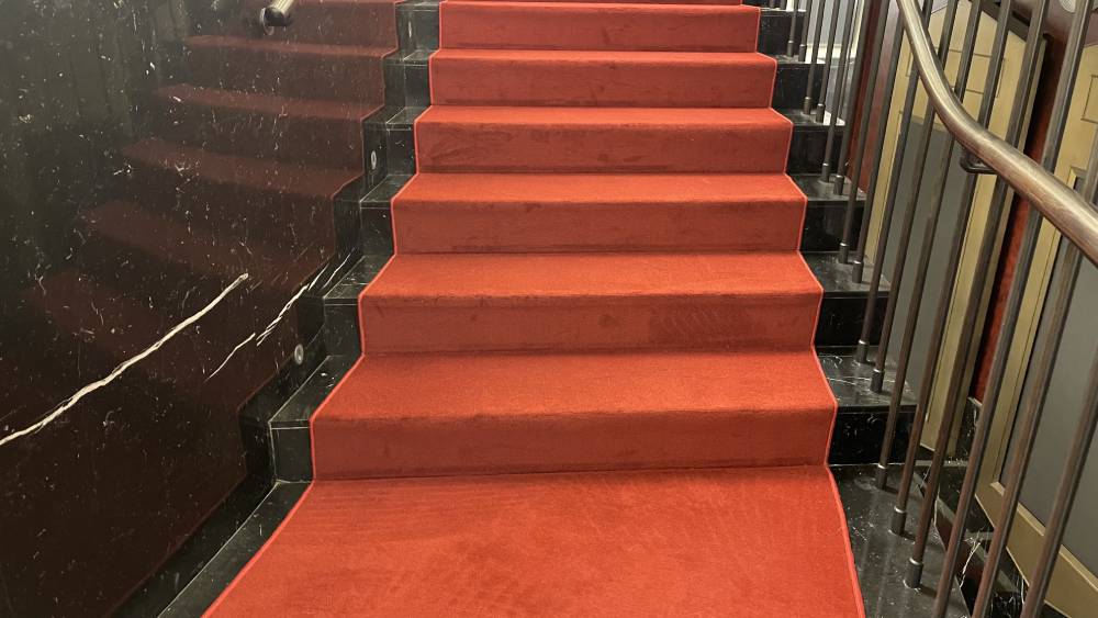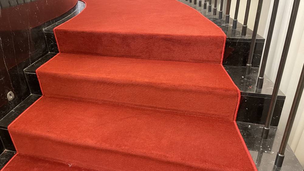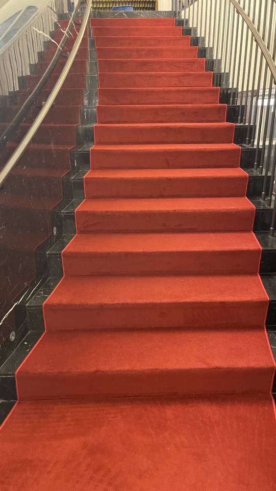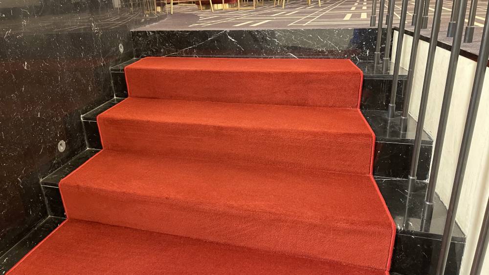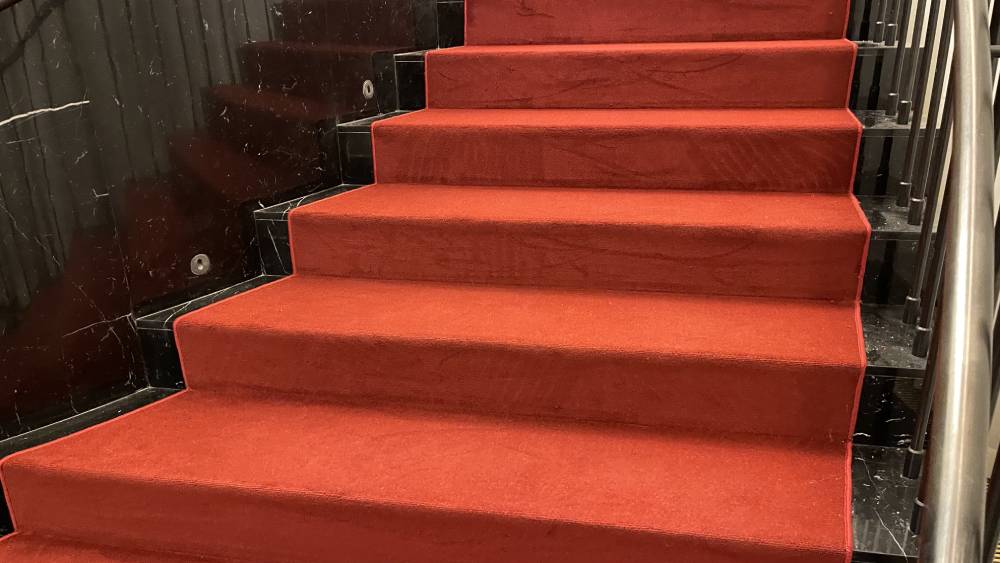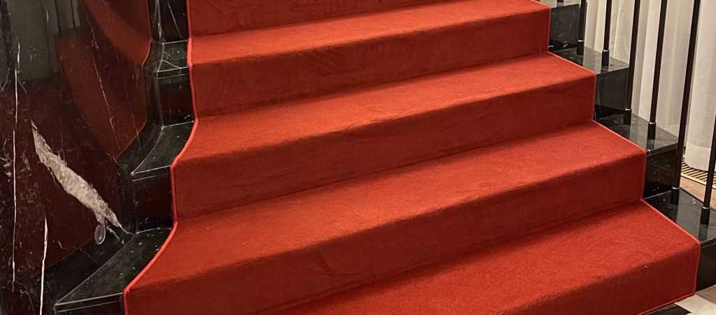 Красное ковровое покрытие - это всегда беспроигрышный яркий акцент и оригинальное дополнение к дизайну помещения.