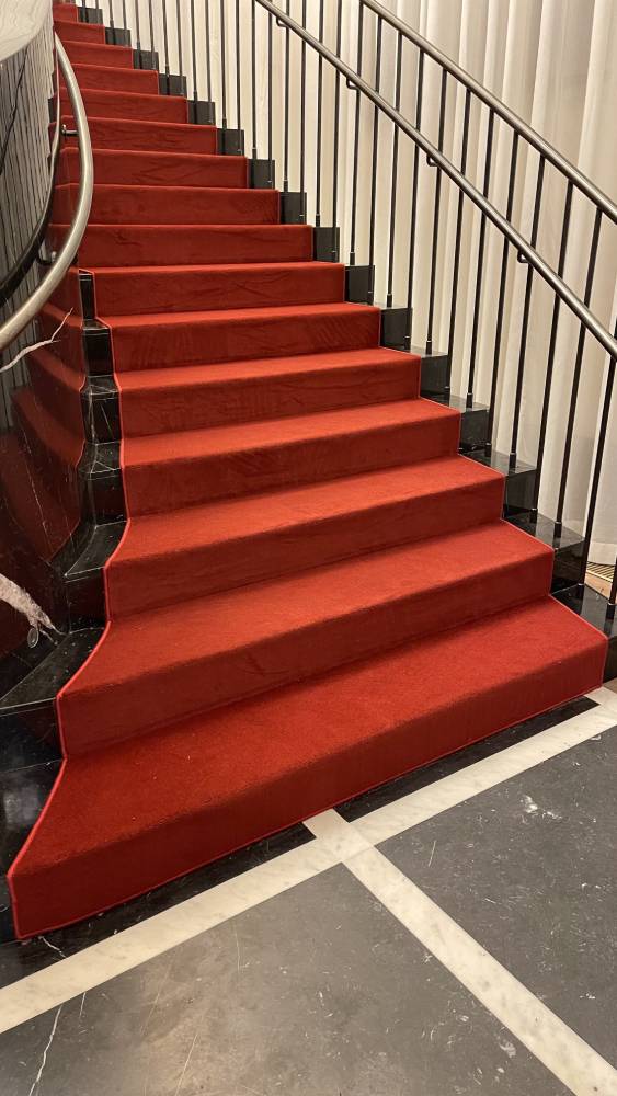 Хотите заказать монтаж коврового покрытия сложной формы для лестничного марша? Просто позвоните нам: