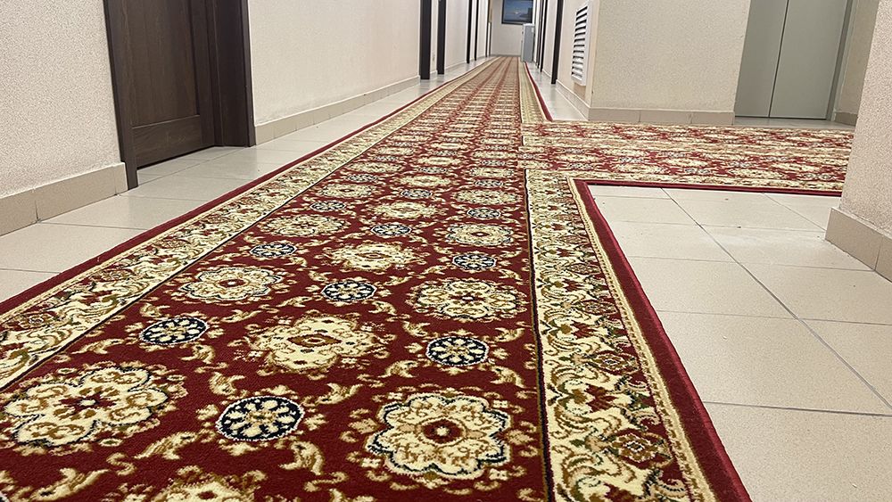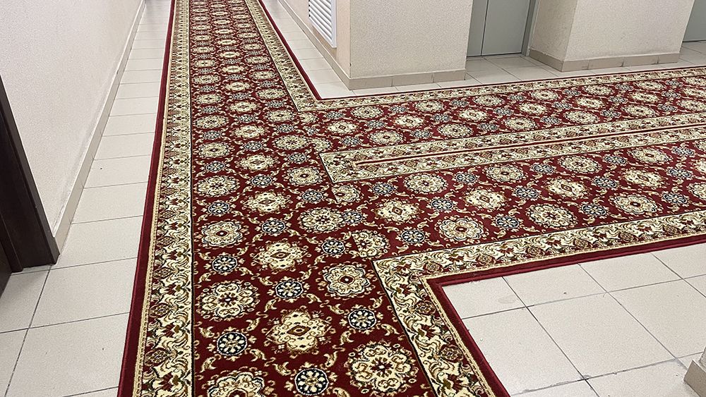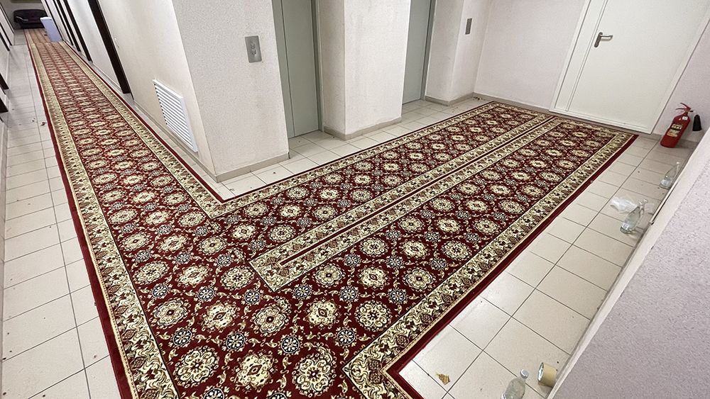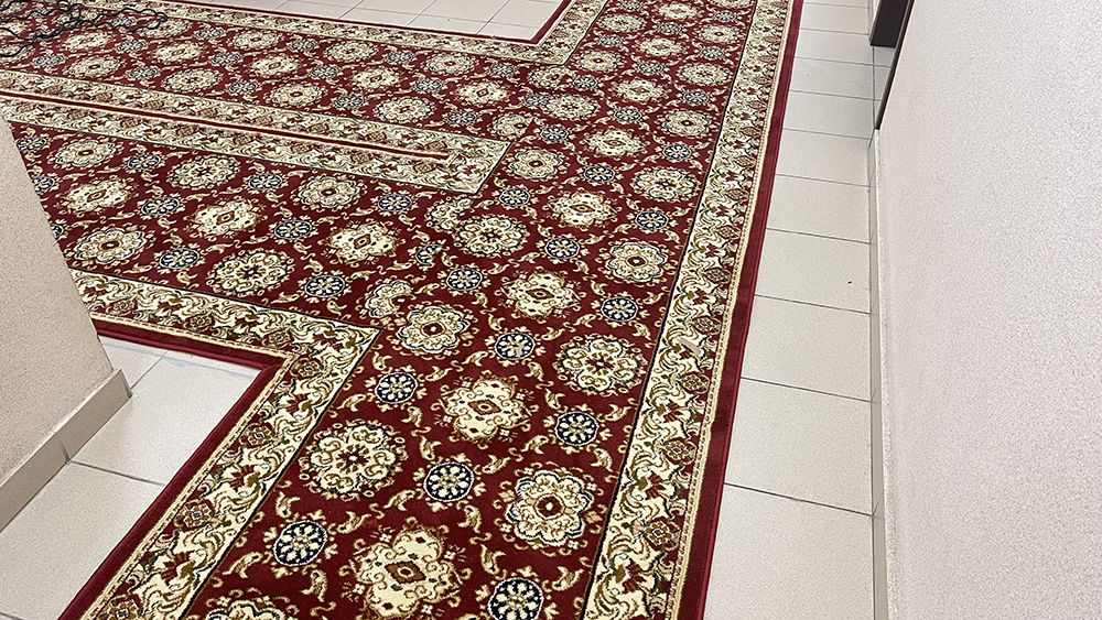 В ходе работ была выбрана яркая красная ковровая дорожка с оригинальным рисунком. Этот смелый выбор не только придаёт коридорам здания энергию и динамику, но и создает атмосферу уютного и гостеприимного пространства. Мы уверены, что такая дорожка станет эффектным акцентом, который порадует посетителей и сотрудников.