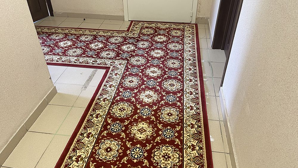 Укладка и монтаж ковровой дорожки проводились в коридорах здания, что требовало особого внимания к особенностям пространства и тщательной подготовки основания. Мы позаботились о том, чтобы все работы выполнялись с максимальной аккуратностью и профессионализмом, обеспечивая надежность и долговечность нашего изделия.