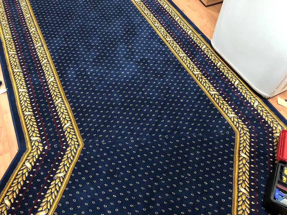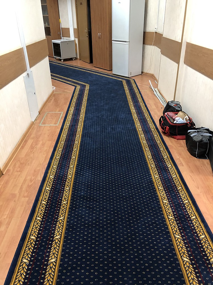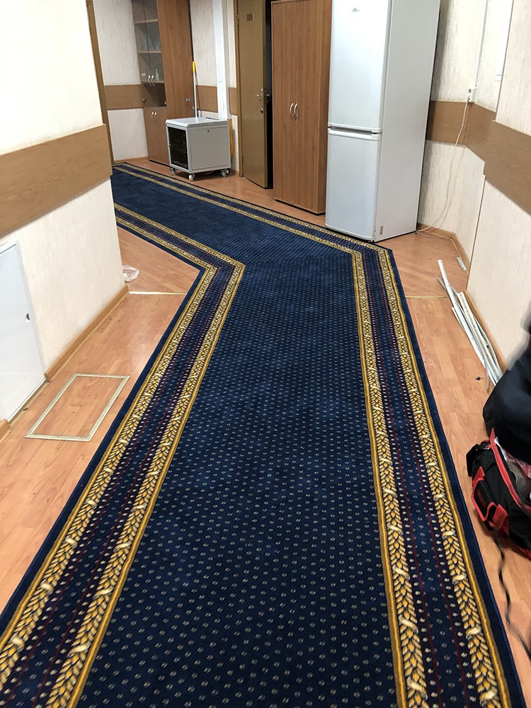 Следующим шагом стала укладка и монтаж ковровой дорожки. Важно отметить, что профессиональная укладка — это не просто размещение ковра на поверхности. Мы следили за тем, чтобы каждая деталь была уложена с максимальным вниманием к деталям, обеспечивая ровность и качество покрытия. Наши специалисты применяли различные методы укладки в зависимости от специфики помещения, учитывая такие факторы, как уровень нагрузки и планировка пространства.