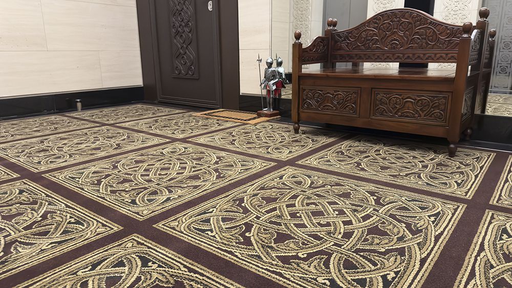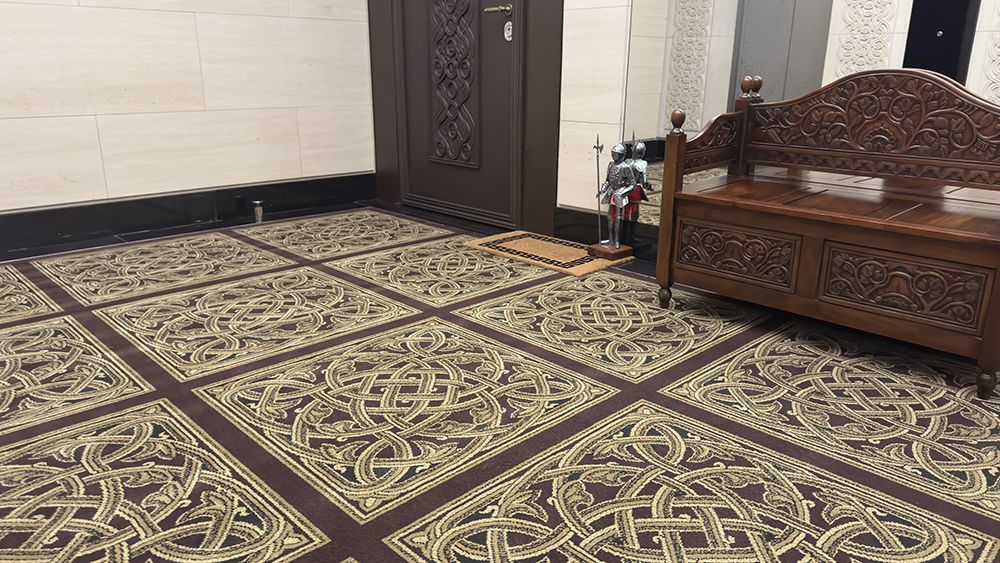 Ковровое покрытие, которое мы уложили, было предоставлено клиентом и изготовлено по уникальному способу «Аксминстер». Этот метод изготавливает высококачественные ковры с использованием специального тканого процесса, который позволяет создавать сложные узоры и текстуры.