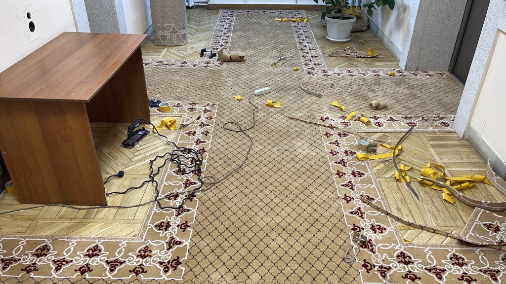 Сомнений в большом количестве размеров и конфигураций не возникло — наши специалисты провели тщательный раскрой ковровых дорожек на основе предварительных измерений. Это позволило нам избежать ошибок и рассчитать количество необходимого материала с максимальной эффективностью.