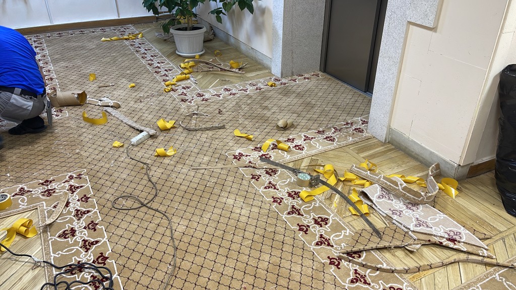 Первоначально мы очистили пол и подготовили его для укладки. Каждый этап подготовки был важен для достижения идеального результата, поэтому мы уделили особое внимание каждому моменту. После подготовки мы сделали точные замеры, чтобы обеспечить идеальную подгонку дорожек по всему коридору.