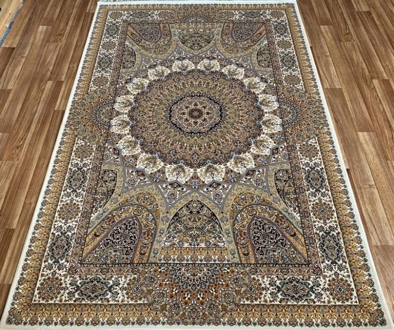 Яркий, с мелким классическим рисунком, очень красивый ковер насыщенного кремового с добавлением в рисунке ковра золотистого цвета, очень красивый цвет, четко выявленный классический рисунок на хлопковой основе. Плотный и нежный ворс, ковер смотрится очень богато - в традициях Иранских мастеров ковроткачества. Ковер антистатичный и антиаллергенный, ворс не скатывается, не линяет. Ковер можно стирать, мыть. Одно лишь прикосновение к ковру, Вы сразу понимаете высокое качество материала, именно тактильное ощущение позволяет сравнивать ковры, даже если они очень схожи по своему внешнему виду. Ковер произведен из экологически чистого материала, древесной вискозы и бамбукового шелка.