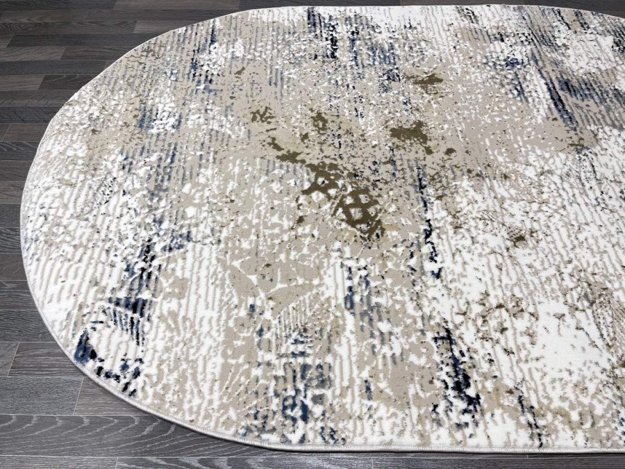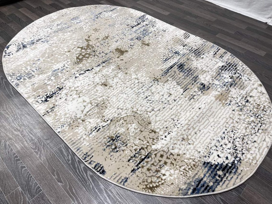 Купить овальный ковер из полиэстера Aura 40705A_MAVİ / CÖKME BEJ (Турция) в интернет-магазине в Москве | Эко-ковры