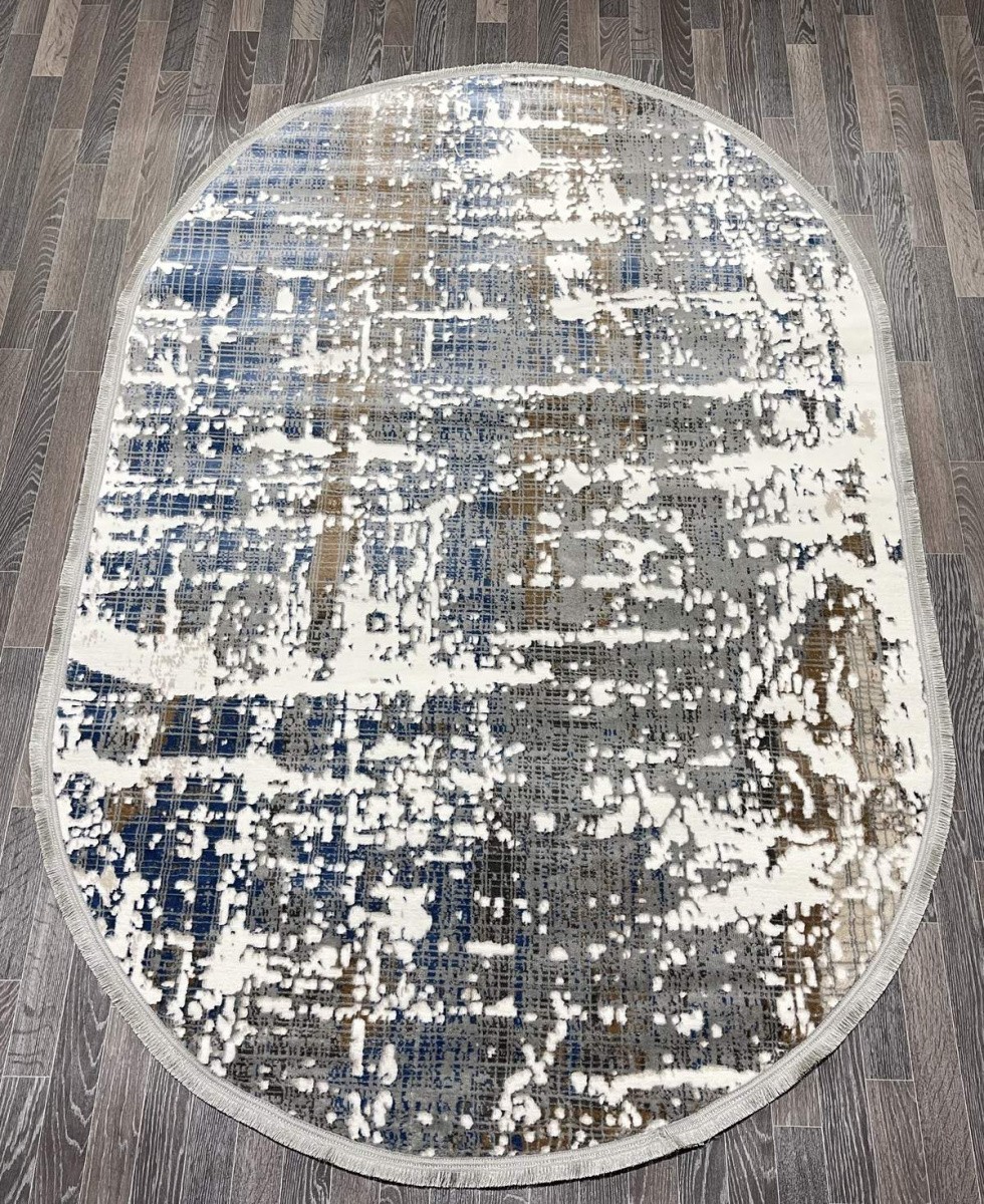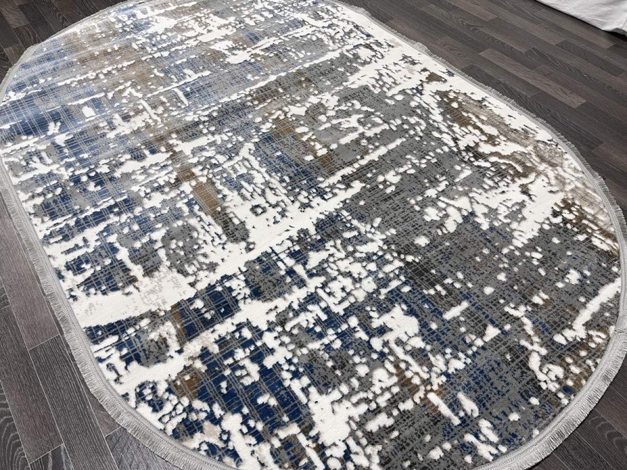 Дизайн Ковер Aura 40197A_CÖKME BEYAZ / A.GRİ овал