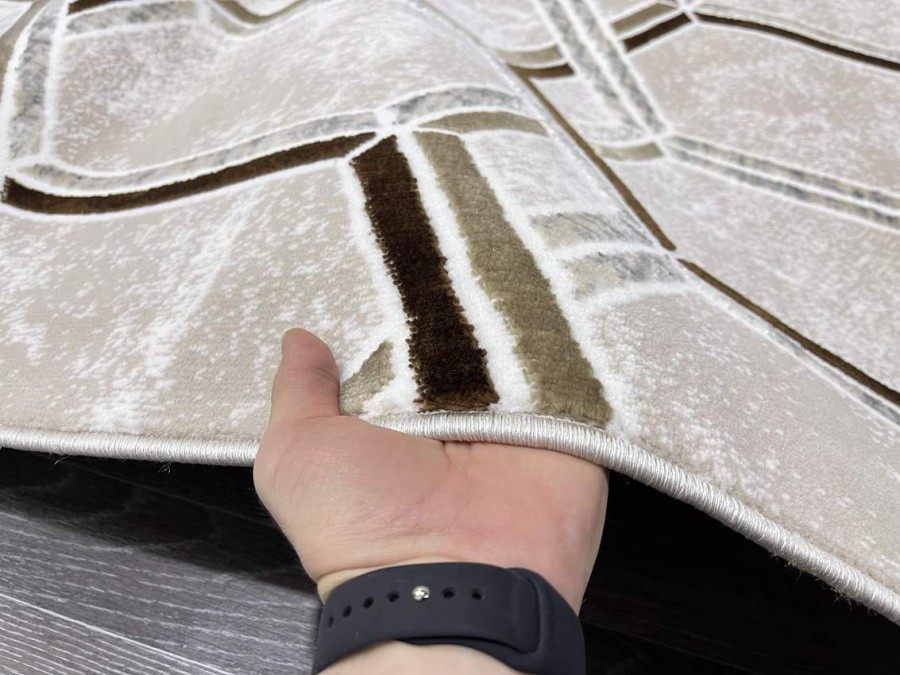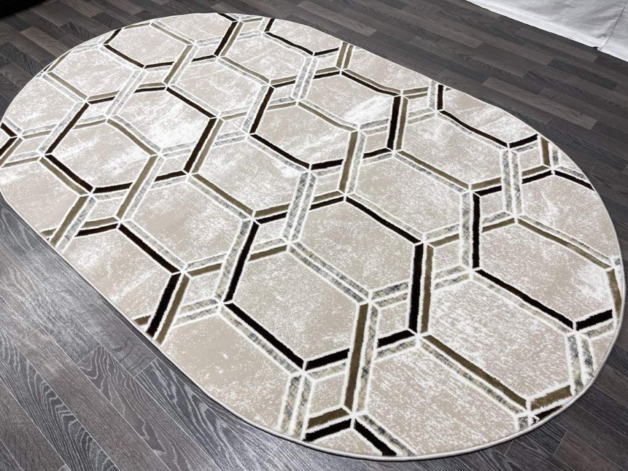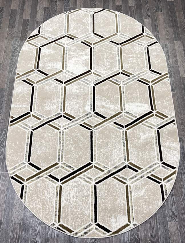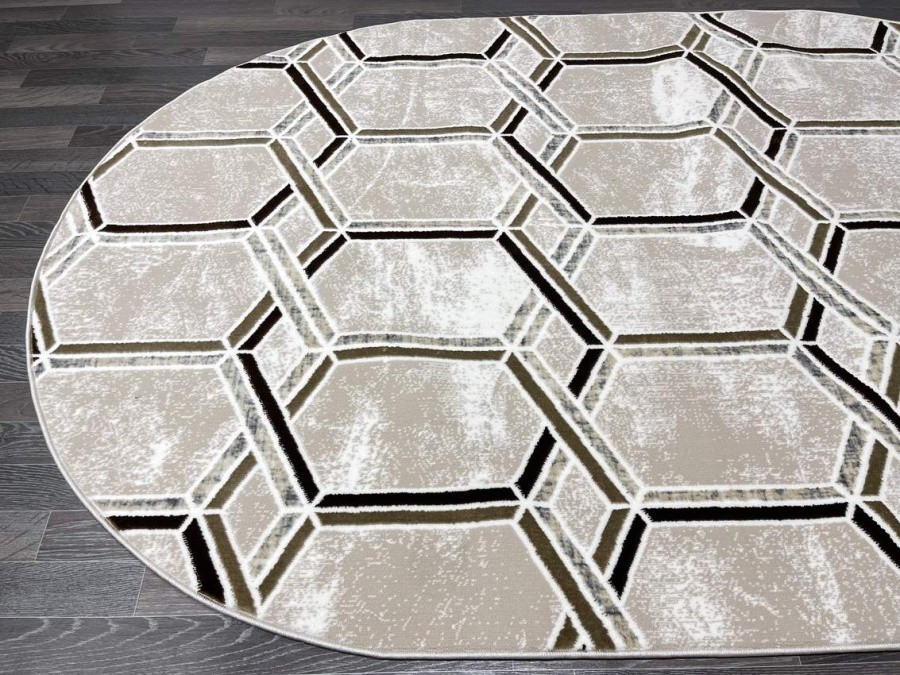 Купить овальный ковер из полиэстера Aura 40526B_COKME BEJ / KAHVE овал (Турция) в интернет-магазине в Москве | Эко-ковры