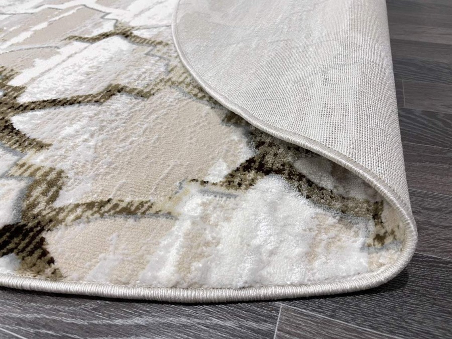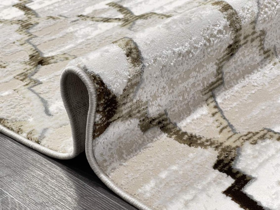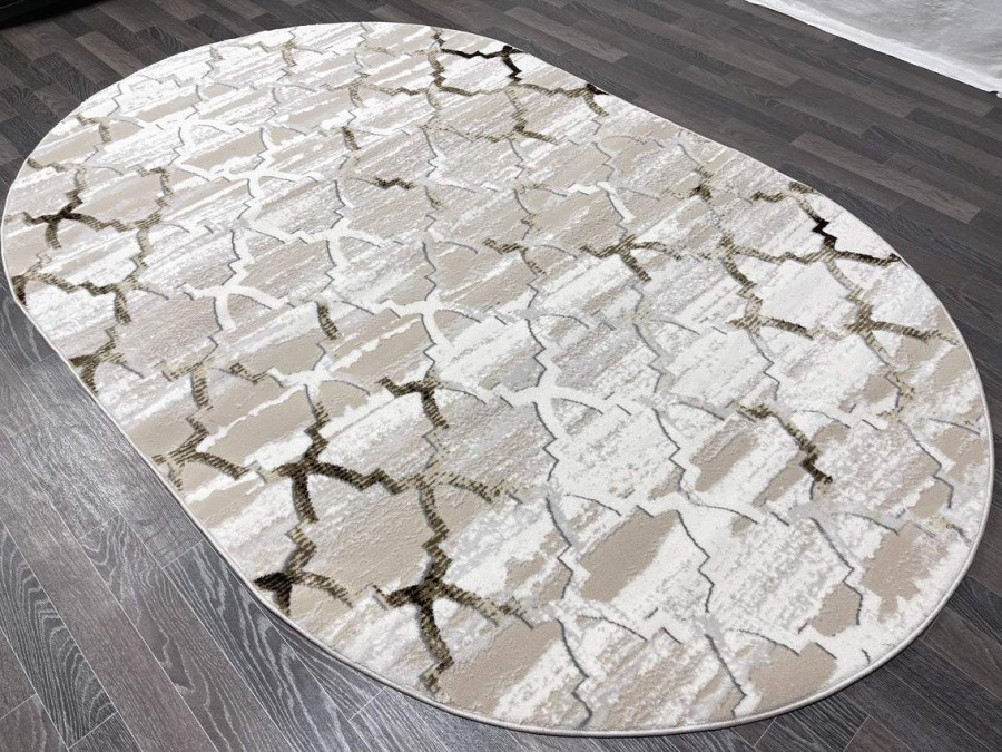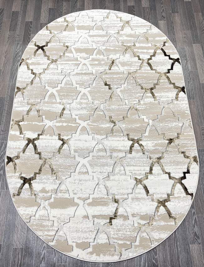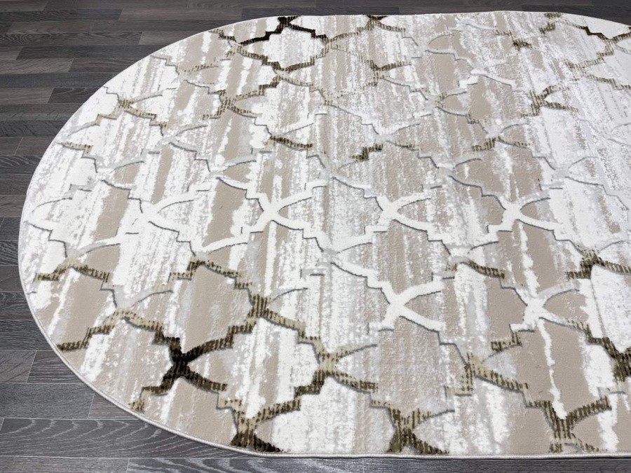 Купить овальный ковер из полиэстера Aura 40547B_KAHVE / COKME BEYAZ овал (Турция) в интернет-магазине в Москве | Эко-ковры