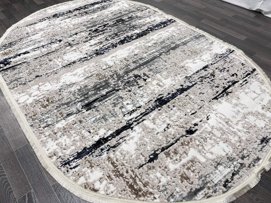 Купить овальный ковер из полиэстера Aura 40638A_CÖKME BEJ / LACİVERT (Турция) в интернет-магазине в Москве | Эко-ковры