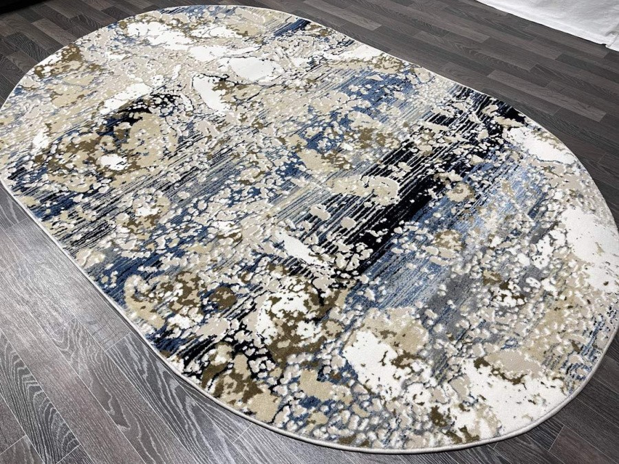Купить овальный ковер из полиэстера Aura 40697C_MAVİ / CÖKME BEYAZ (Турция) в интернет-магазине в Москве | Эко-ковры