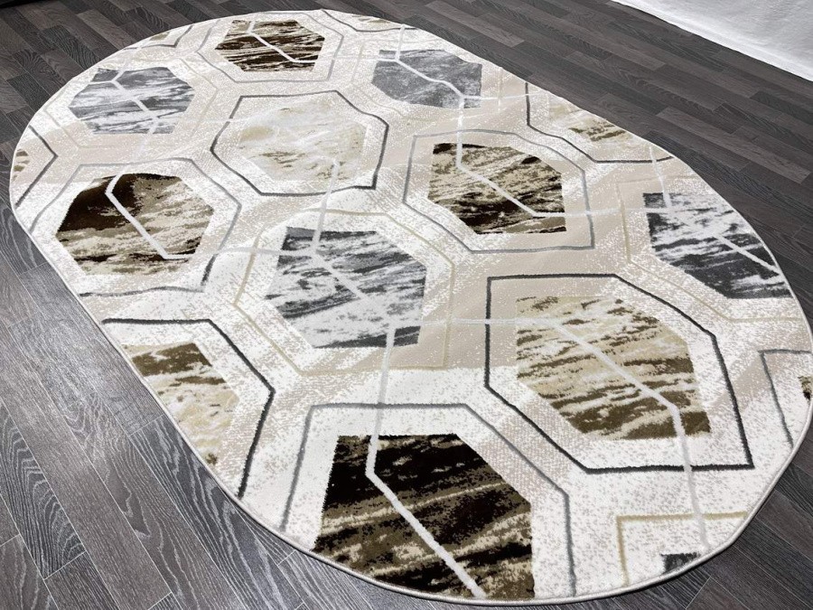 Купить овальный ковер из полиэстера Aura 40709A_KOYU GRI / KAHVE (Турция) в интернет-магазине в Москве | Эко-ковры