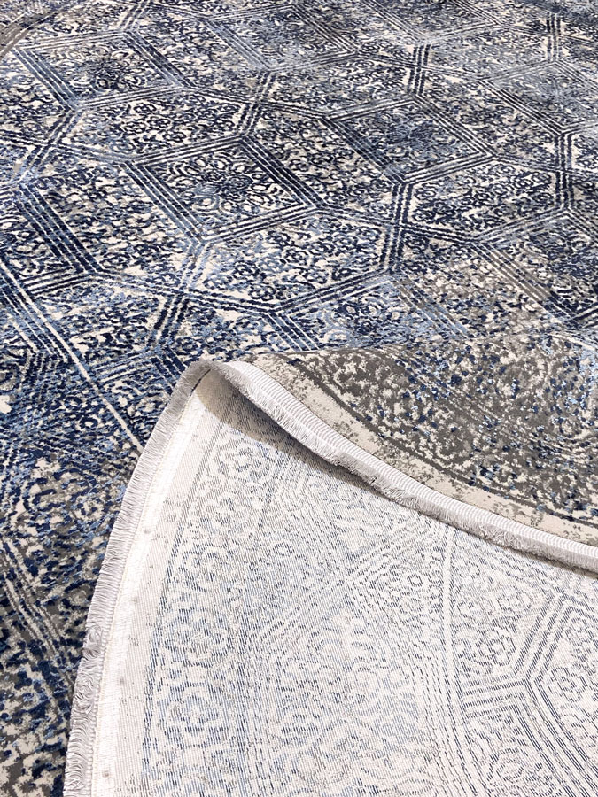 Новинка сезона 2020 - 2021, натуральные, мягкие и приятные на ощупь ковры из вискозы в сочетании акрилового волокна на мягкой, щадящей основе из хлопка. Ковер в нежно серой цветовой палитре, красивый современный рисунок, ворс очень красивый и нежный, чувствуется высокое качество обработки. Ковер легко чистится, можно мыть, стирать, влаги не боится. Надеемся, что новинка нового сезона порадуется Вас не только стильным дизайном, но и своим новым составом качества.