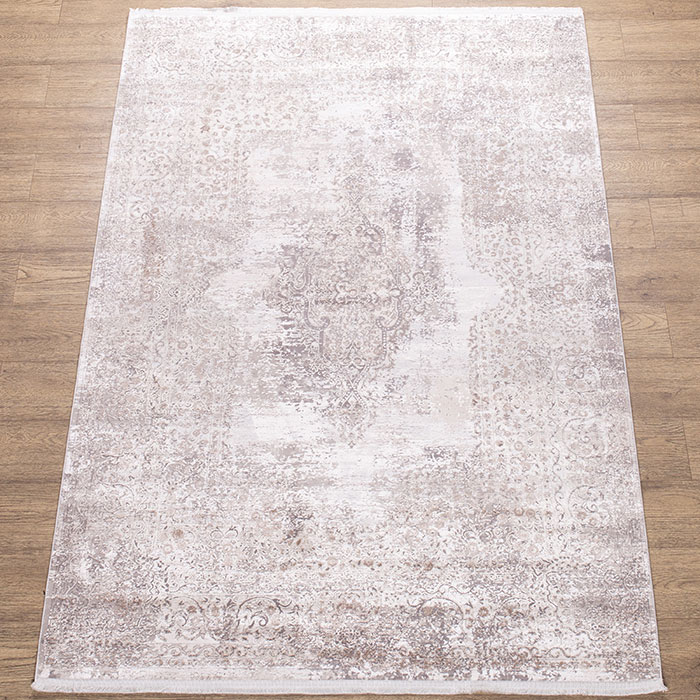Новинка сезона, натуральные, мягкие и приятные на ощупь ковры из вискозы в сочетании акрилового волокна на мягкой, щадящей основе из хлопка. Ковер в нежно серой цветовой палитре, красивый современный рисунок, ворс очень красивый и нежный, чувствуется высокое качество обработки. Ковер легко чистится, можно мыть, стирать, влаги не боится. Надеемся, что новинка нового сезона порадуется Вас не только стильным дизайном, но и своим новым составом качества.