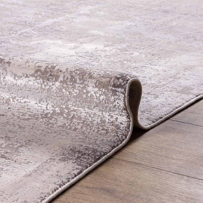 Новинка сезона, натуральные, мягкие и приятные на ощупь ковры из вискозы в сочетании акрилового волокна на мягкой, щадящей основе из хлопка. Ковер в нежно серой цветовой палитре, красивый современный рисунок, ворс очень красивый и нежный, чувствуется высокое качество обработки. Ковер легко чистится, можно мыть, стирать, влаги не боится. Надеемся, что новинка нового сезона порадуется Вас не только стильным дизайном, но и своим новым составом качества.