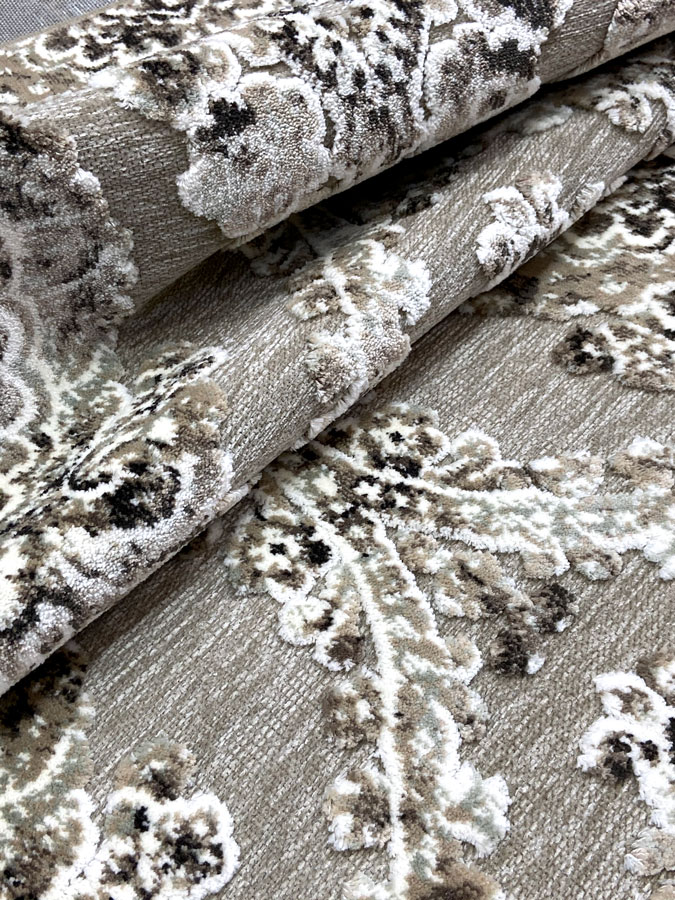 Ковры с невысоким рельефным рисунком на гобеленовой основе, рельеф придает приятный, красивый узор из вискозной нити, даже при не высоком ворсе, ковры смотрятся пышными, эффектными и красочными.