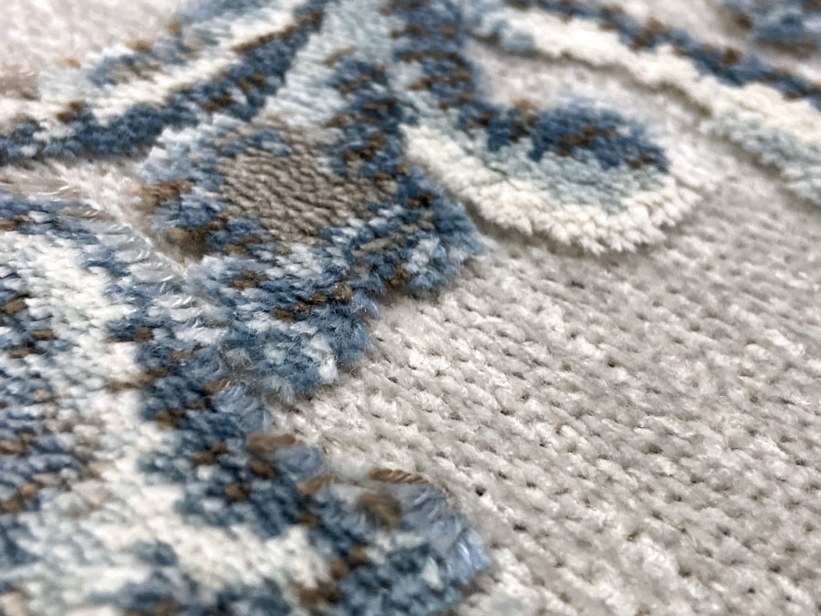 Ковры с невысоким рельефным рисунком на гобеленовой основе, рельеф придает приятный, красивый узор из вискозной нити, даже при не высоком ворсе, ковры смотрятся пышными, эффектными и красочными.