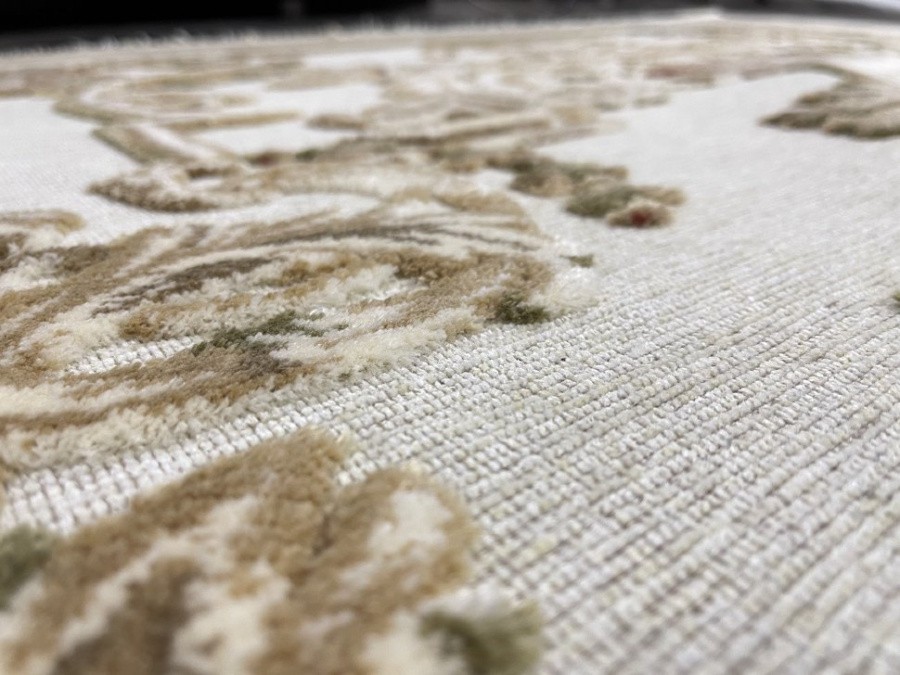 Ковры с невысоким рельефным рисунком на гобеленовой основе, рельеф придает приятный, красивый узор из вискозной нити, даже при не высоком ворсе, ковры смотрятся пышными, эффектными и красочными.