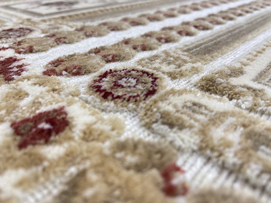 Ковры с невысоким рельефным рисунком на гобеленовой основе, рельеф придает приятный, красивый узор из вискозной нити, даже при не высоком ворсе, ковры смотрятся пышными, эффектными и красочными.