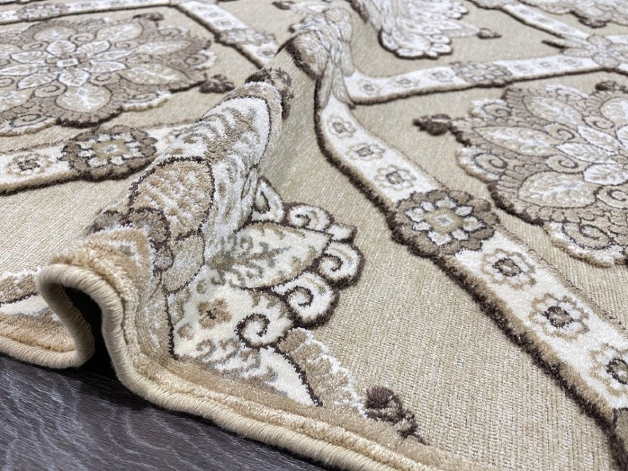 Ковры с невысоким рельефным рисунком на гобеленовой основе, рельеф придает приятный, красивый узор из вискозной нити, даже при не высоком ворсе, ковры смотрятся пышными, эффектными и красочными.