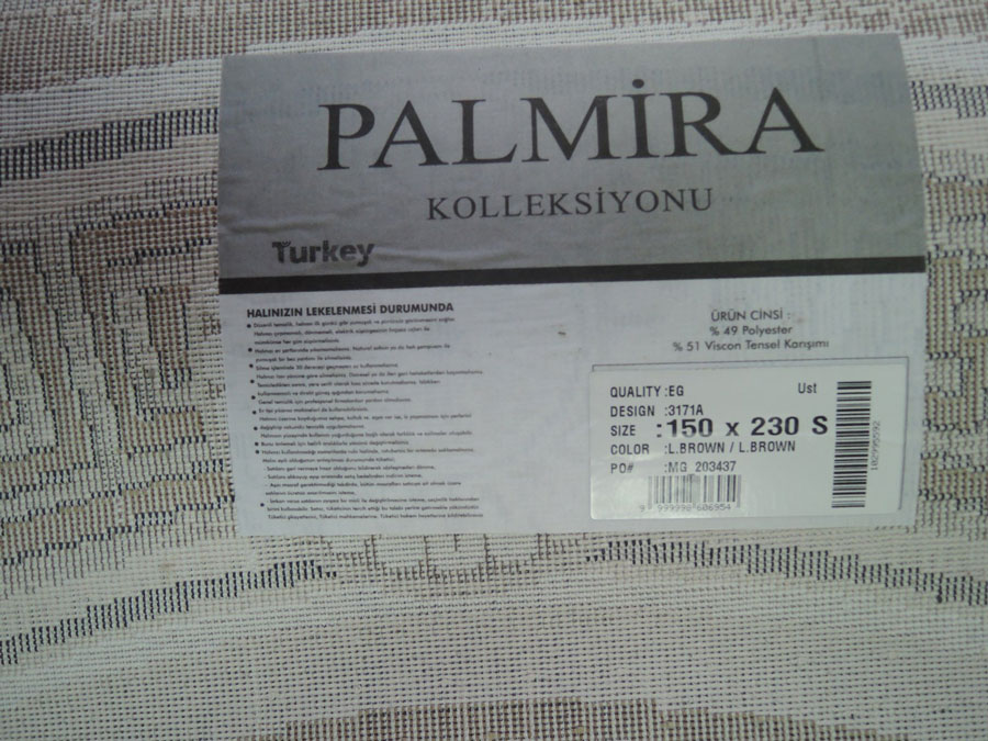 Турецкие акриловые ковры, мягкие, шелковистые, пушистые на ощупь красивые ковры PALMIRA - изюминка современного интерьера, очень красивые, с переливающимся оттенком ворса на натуральной противоскользящей хлопковой основе, не требующей лополнительной фиксации, за счет высокой плотности и веса ковер плотно ложится на любую поверхность, не скользит. Ковры PALMIRA сертифицированы, антиаллергенные и антистатичные. Ковер смотрится очень богато, рисунок на ковре немного с выпуклостями, иными словами структурированный, высота ворса не большая, но за счет структурного ворса ковер смотрится пышным, воздушным. Одно прикосновение к нему и Вы сразу почувствуете теплоту ворса, он очень теплый. Ковер можно чистить, проводить влажную уборку, сдавать в химчистку.