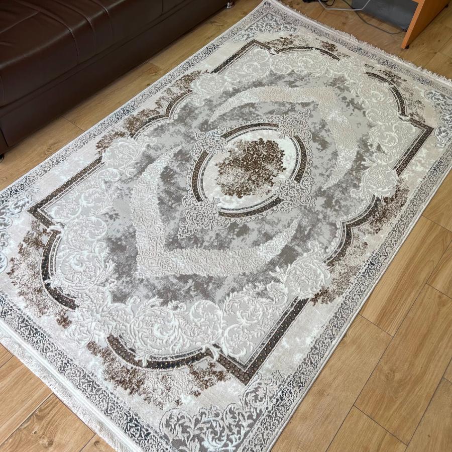 Турецкие акриловые ковры, мягкие, шелковистые, пушистые на ощупь красивые ковры PALMIRA - изюминка современного интерьера, очень красивые, с переливающимся оттенком ворса на натуральной противоскользящей хлопковой основе, не требующей лополнительной фиксации, за счет высокой плотности и веса ковер плотно ложится на любую поверхность, не скользит. Ковры PALMIRA сертифицированы, антиаллергенные и антистатичные. Ковер смотрится очень богато, рисунок на ковре немного с выпуклостями, иными словами структурированный, высота ворса не большая, но за счет структурного ворса ковер смотрится пышным, воздушным. Одно прикосновение к нему и Вы сразу почувствуете теплоту ворса, он очень теплый. Ковер можно чистить, проводить влажную уборку, сдавать в химчистку.