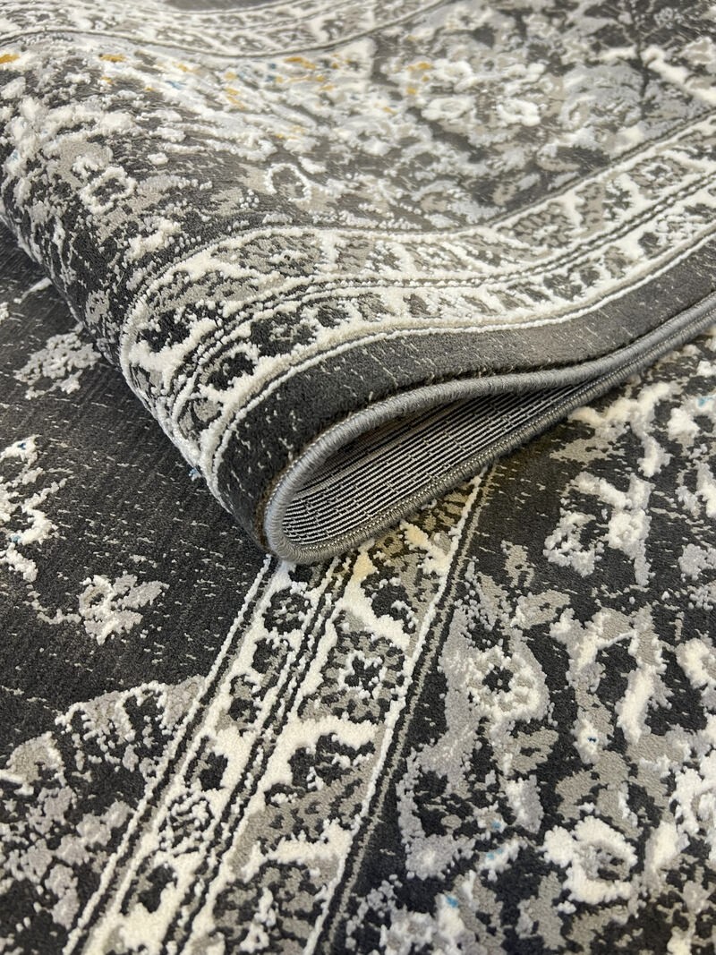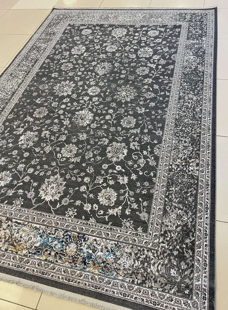 Новинка сезона! натуральные, мягкие и приятные на ощупь ковры из вискозы в сочетании акрилового волокна на мягкой, щадящей основе из хлопка. Ковер в нежно серой цветовой палитре, красивый современный рисунок, ворс очень красивый и нежный, чувствуется высокое качество обработки. Ковер легко чистится, можно мыть, стирать, влаги не боится. Надеемся, что новинка нового сезона порадуется Вас не только стильным дизайном, но и своим новым составом качества.