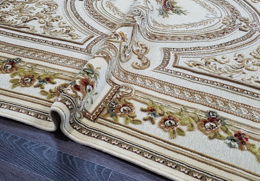 Ковры с невысоким рельефным рисунком на гобеленовой основе, рельеф придает приятный, красивый узор из вискозной нити, даже при не высоком ворсе, ковры смотрятся пышными, эффектными и красочными.