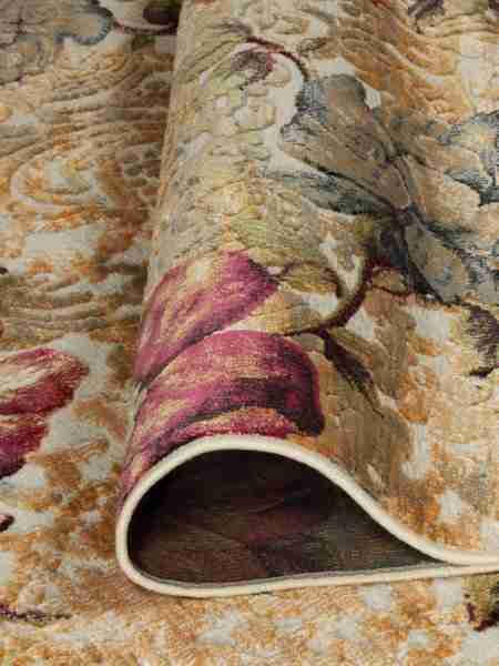 Ковры с невысоким рельефным рисунком на гобеленовой основе, рельеф придает приятный, красивый узор из вискозной нити, даже при не высоком ворсе, ковры смотрятся пышными, эффектными и красочными.