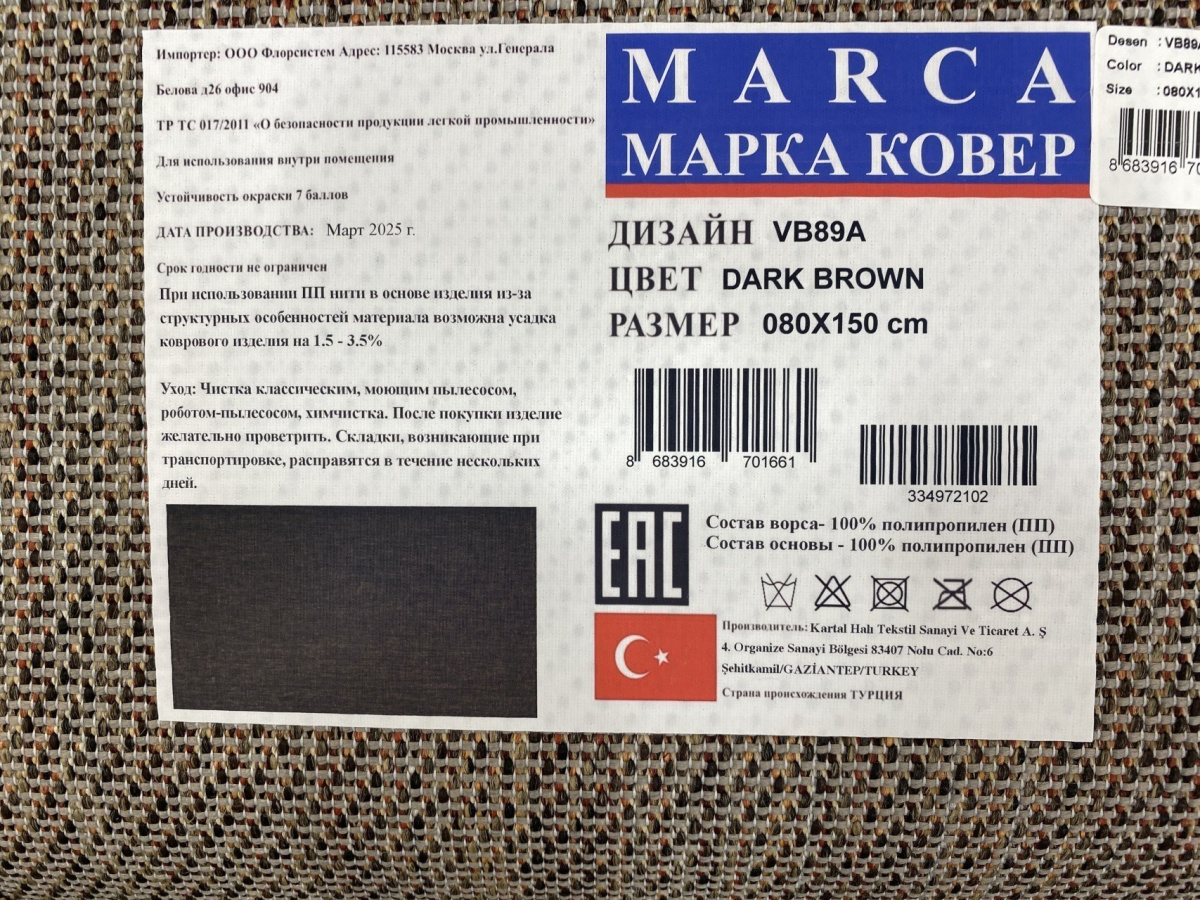 | Элемент каталога | Циновка MARCA VB89A DARK BROWN [665906] | |
