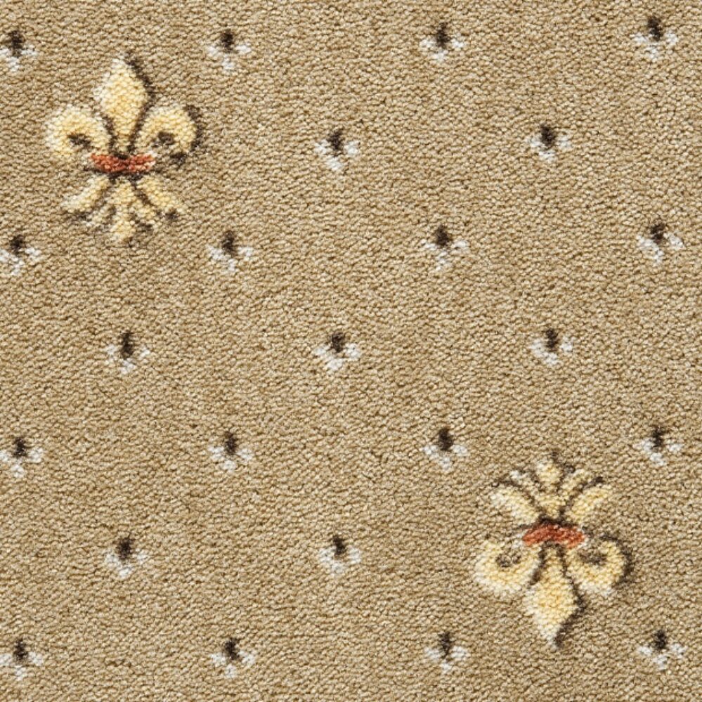 Классический бельгийский ковролин Heritage 38 с королевскими желтыми лилиями и мелкими черно-белыми фигурками, симметрично разбросанными по однотонному полю. Разрезной ворс из полиамида средней высоты 9 мм создает мягкую гладкую поверхность, которая не меняет первоначальный вид в условиях интенсивных ежедневных нагрузок от хождения в обуви.