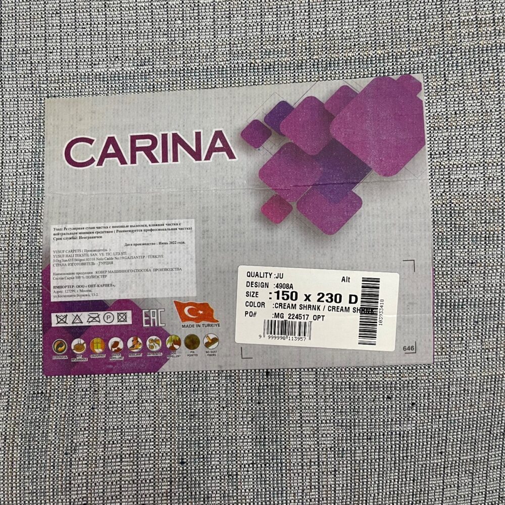 Прямоугольный ковёр Carina 4908A_CREAM_CREAM, Турция