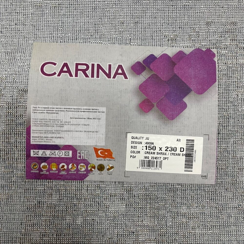 Прямоугольный ковёр Carina 4909A_CREAM_CREAM, Турция